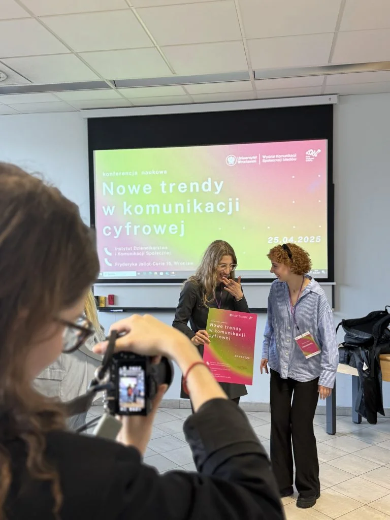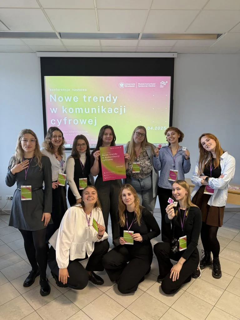 W 2025 roku zorganizowaliśmy również pierwszą studencką konferencję naukową na naszym Instytucie Nowe Trendy w Komunikacji Cyfrowej. Spotkaliśmy się offline, by porozmawiać o tym, jak zmienia się komunikacja.